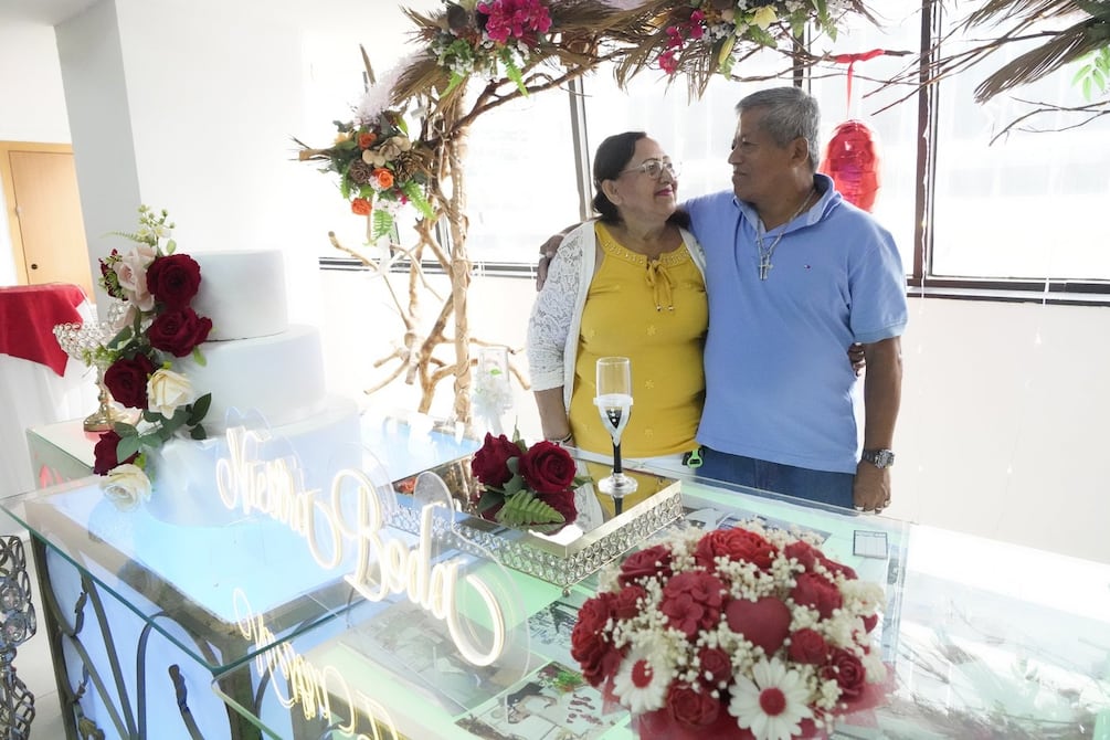 Pedro Banchón y Digna Roca de Banchón llegaron desde el sur de Guayaquil. Tienen 67 años y llevan 52 años juntos. Este 13 de febrero decidieron formalizar una relación que comenzó cuando ambos tenían 15.