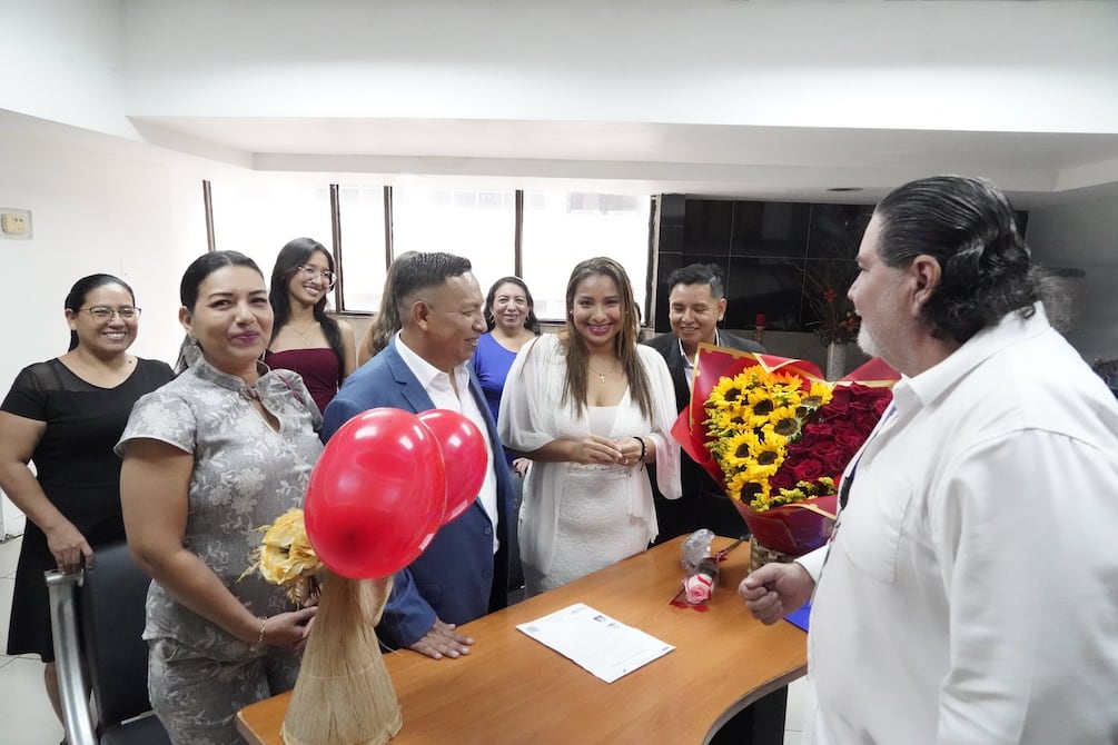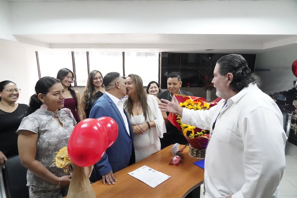 Diana Olveria, de 31 años, salió de la sala de ceremonias con el acta en la mano y una sonrisa contenida. A su lado caminaba Steven Pin Marcillo, su pareja desde hace 15 años. Afuera los esperaba su familia, lista para las fotografías.