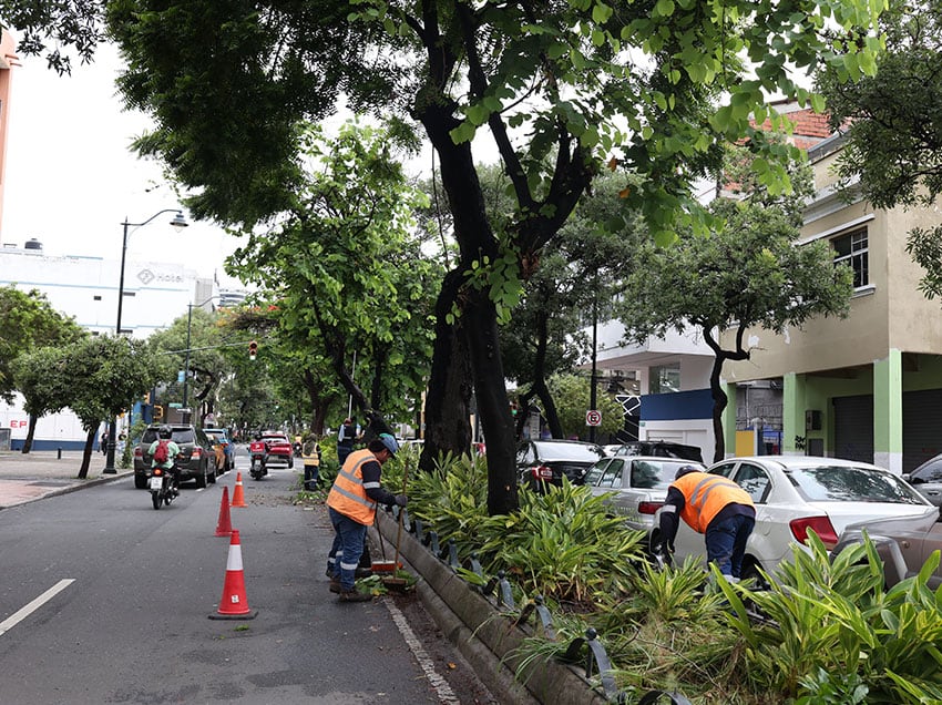 Poda de árboles, desbroce de maleza y vegetación, limpieza y recolección de desechos fueron las acciones que ejecutó personal de la Dirección de Ambiente y Preservación de Áreas Verdes, a lo largo de la calle Vicente Rocafuerte, en el centro de la ciudad.