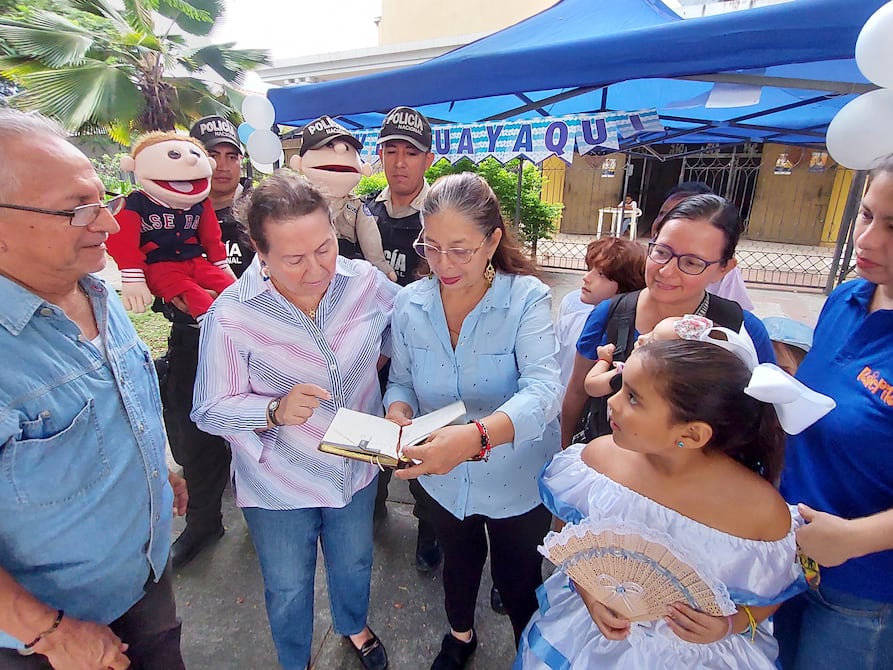Los hermanos Gabriel y Alejandra Pérez lucieron los atuendos guayaquileños: una guayabera con pantalón negro y un vestido celeste y blanco, respectivamente. Ellos protagonizaban un pregón junto con un grupo de niños para homenajear a Guayaquil, por sus 488 años de proceso fundacional, en los exteriores de la iglesia Nuestra Señora de Montserrat, en la ciudadela 9 de Octubre, sur de Guayaquil.