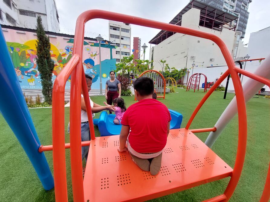 Cada que Rubén León llega a la calle Panamá a comer con su familia, obligatoriamente tiene que destinar un par de horas para que su hija Renata disfrute de los juegos ubicados en el parque infantil ubicado en la calle Luzárraga e Imbabura.