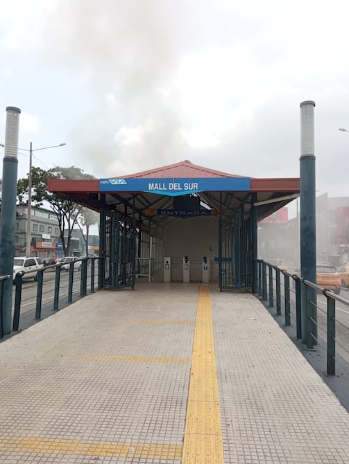 La estación Mall del Sur, del sistema Metrovía, ubicada en la avenida 25 de Julio, se cerró temporalmente este domingo luego del incendio que sufrió un bus al pie de la parada.