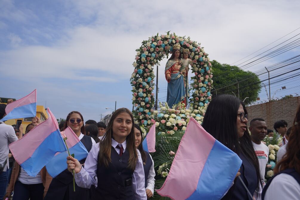 Cientos de guayaquileños, entre estudiantes, padres de familia y miembros de la comunidad salesiana, empezaron la jornada de este viernes, 23 de mayo, con una procesión en honor a María Auxiliadora, madre y guía de la comunidad salesiana de Guayaquil.