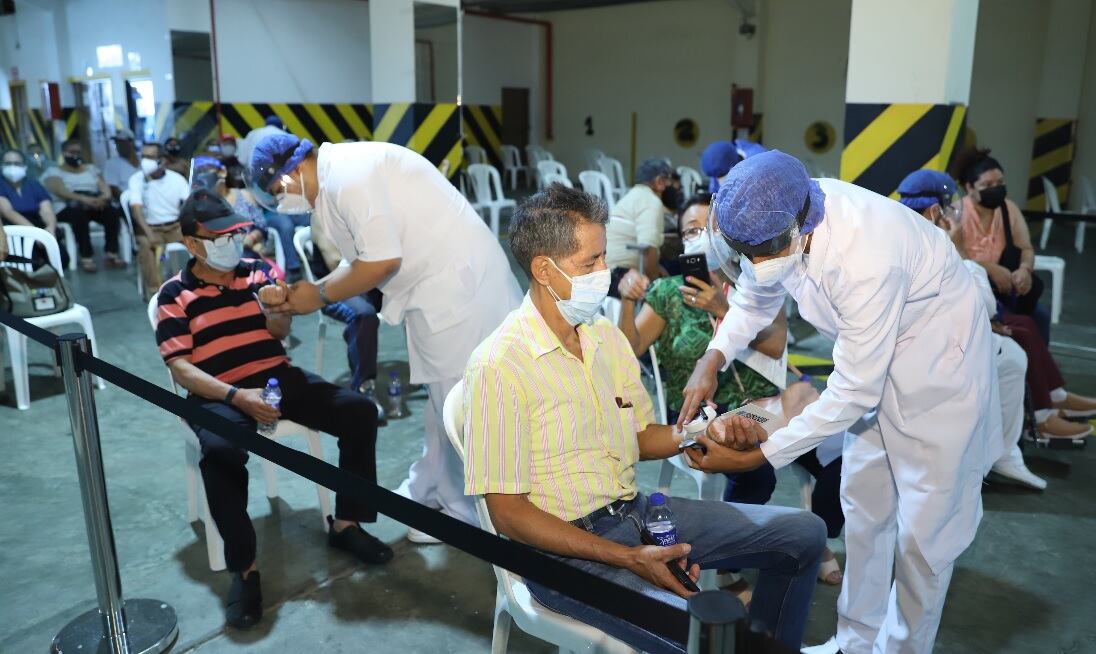 Julio César Montesdeoca, de 70 años, y María Narcisa Mejía, de 71, estaban agarrados de la mano en la sala de prevacunación en el Instituto Tecnológico Bolivariano (ITB), en el norte de la urbe. Allí está uno de los dos puntos de vacunación que se inauguraron con el convenio entre el Ministerio de Salud Pública (MSP) y el Municipio de Guayaquil.