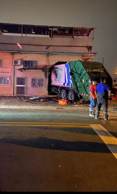Un siniestro de tránsito se produjo la madrugada de este sábado, 15 de junio, en las calles Colombia y Villavicencio, sur de Guayaquil. El conductor de un carro recolector de basura se impactó contra una vivienda del sector.