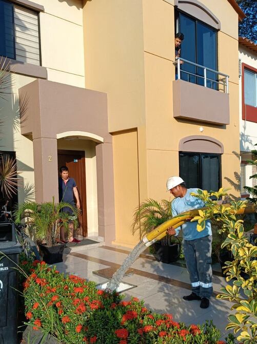 Varios tanqueros acudieron la tarde de este domingo 27 de agosto a urbanizaciones de la vía a la costa ante la desesperación de residentes que no tenían cómo realizar sus actividades de limpieza, alimentación, entre otras más, en sus hogares y negocios de esa zona.