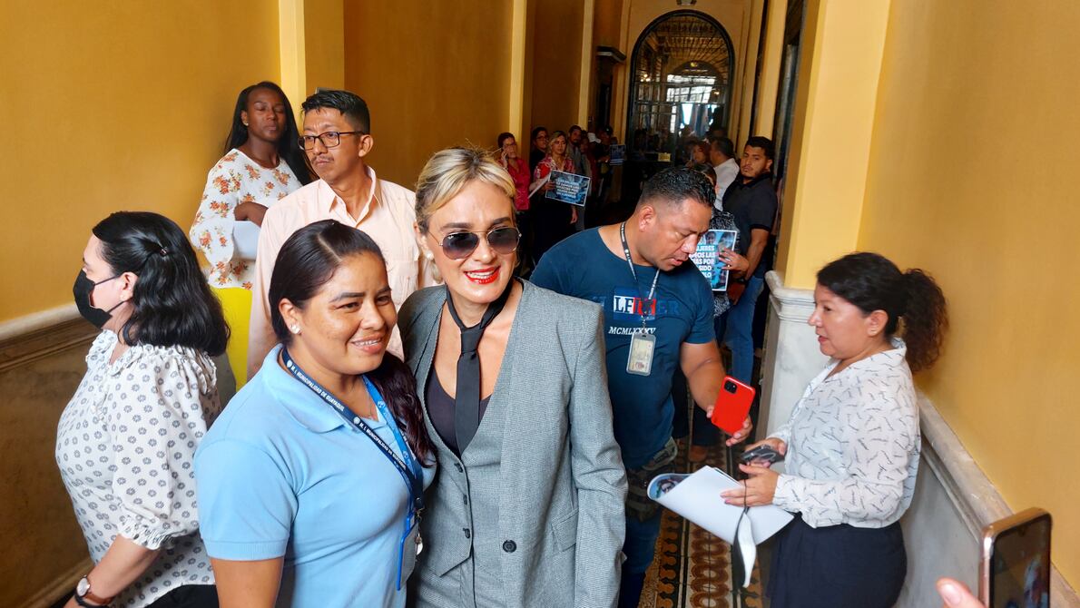 La alcaldesa Cynthia Viteri llegó este viernes 12 de mayo al Palacio Municipal, en el centro de Guayaquil. Con un traje gris, blusa y corbata negra ingresó al pasaje Arosemena del brazo de su esposo, Juan Carlos Vásconez.