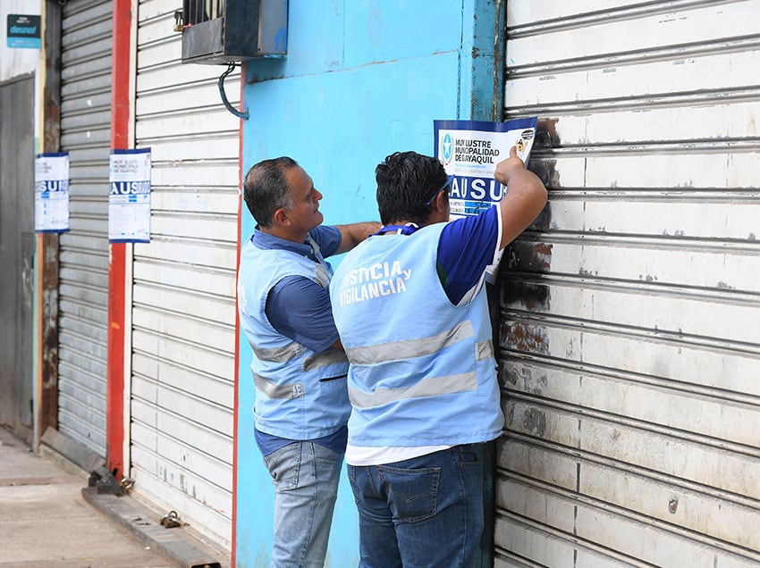 Cinco locales clausurados y el desalojo de una cachinería fue el resultado de un operativo que realizó este jueves la Dirección de Justicia y Vigilancia del Municipio con acompañamiento de la Policía Nacional, en el centro de Guayaquil.