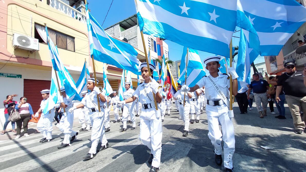 Poco antes de las 10:00, un grupo de exalumnos del colegio Eloy Alfaro llegó con su traje gris y rojo para formar y participar en el desfile organizado por el Comité Promejoras del barrio Garay.