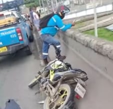 Ellos quedaron tendidos a escasos metros del estanque de agua, según un video difundido en redes sociales. Junto a la fémina quedaron un casco protector y otras pertenencias.