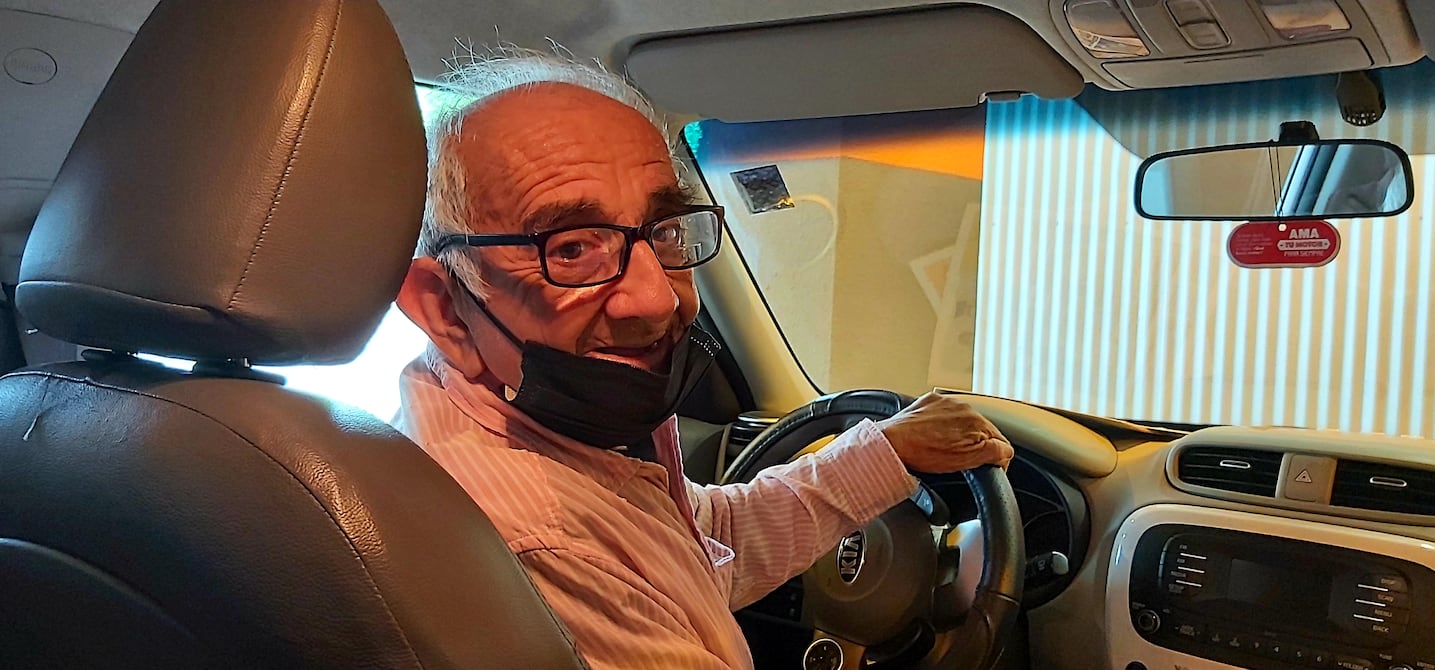 Impecable, con su mascarilla bien puesta y su frasco de alcohol, Víctor Chiriboga Albán, el abuelito de Riocentro Los Ceibos, recibe a sus pasajeros en el parqueadero para brindar el servicio de taxi que le llena de orgullo y de gratitud, pues ese es el sustento de sus cinco nietos, quienes perdieron a su padre y madre hace más de diez años.