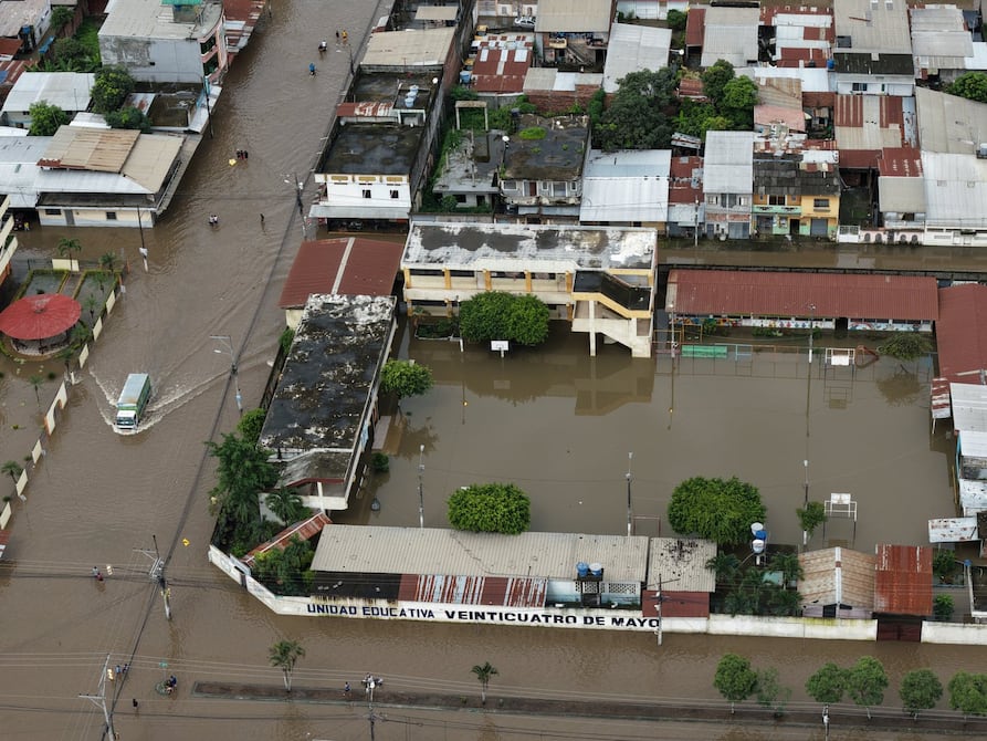 Explicó que el desbordamiento del río Milagro y el estero San Miguel provocó que cerca del 70 % de la ciudad quede bajo el agua.