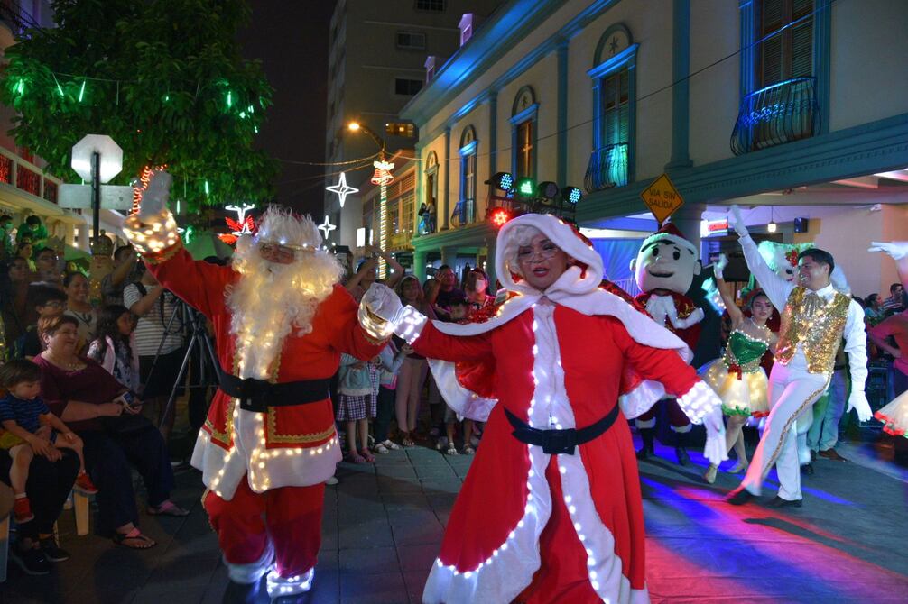 La calle Panamá se sumó a los sitios del centro de la urbe que se iluminaron como parte de las actividades navideñas en el Puerto Principal.