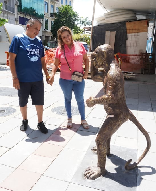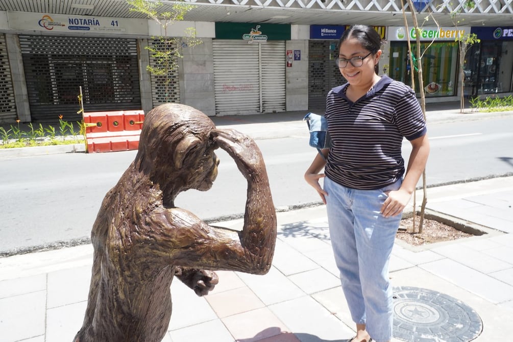 El mono forma parte de un conjunto de figuras que se incorporarán en este tramo de la calle Panamá hasta finales de agosto, en un espacio donde la gente sigue pasando, pero cada tanto alguien se detiene, lo toca o se toma una foto antes de continuar.