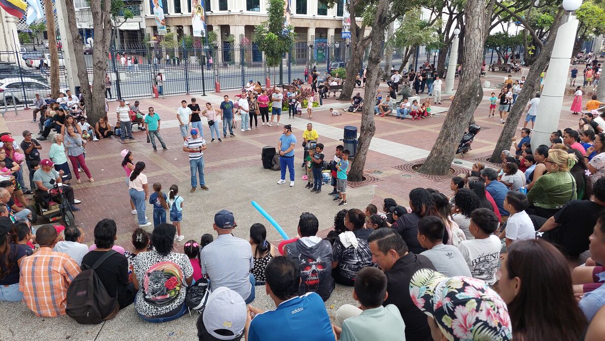 Decenas de familias que se quedaron en Guayaquil salieron este domingo al centro para disfrutar de las actividades.