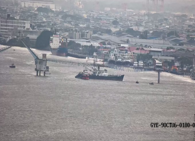 La Empresa Pública Municipal para la Gestión de Riesgos y Control de Seguridad de Guayaquil (Segura EP) alertó que una embarcación chocó contra la infraestructura del puente que conecta con la isla Santay.