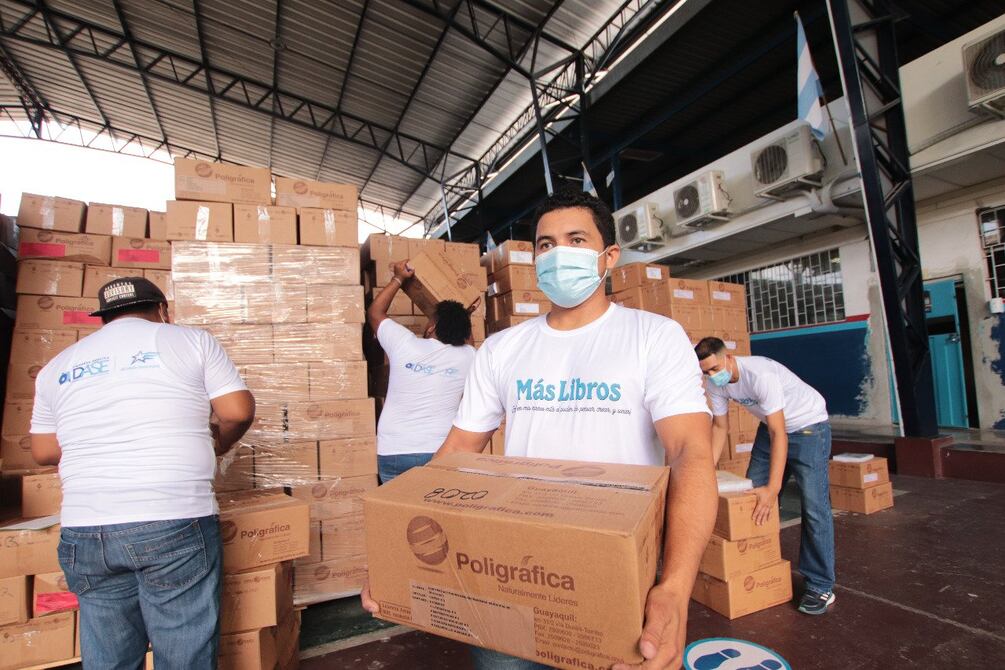 En el coliseo de la Academia Naval Guayaquil, en el norte de la urbe, se inició desde esta semana la entrega de textos gratuitos a los directivos de 500 unidades educativas fiscomisionales, municipales y particulares de Guayaquil para que, a su vez, los distribuyan a sus alumnos que iniciarán clases del año lectivo 2021-2022 desde el próximo 7 de mayo.