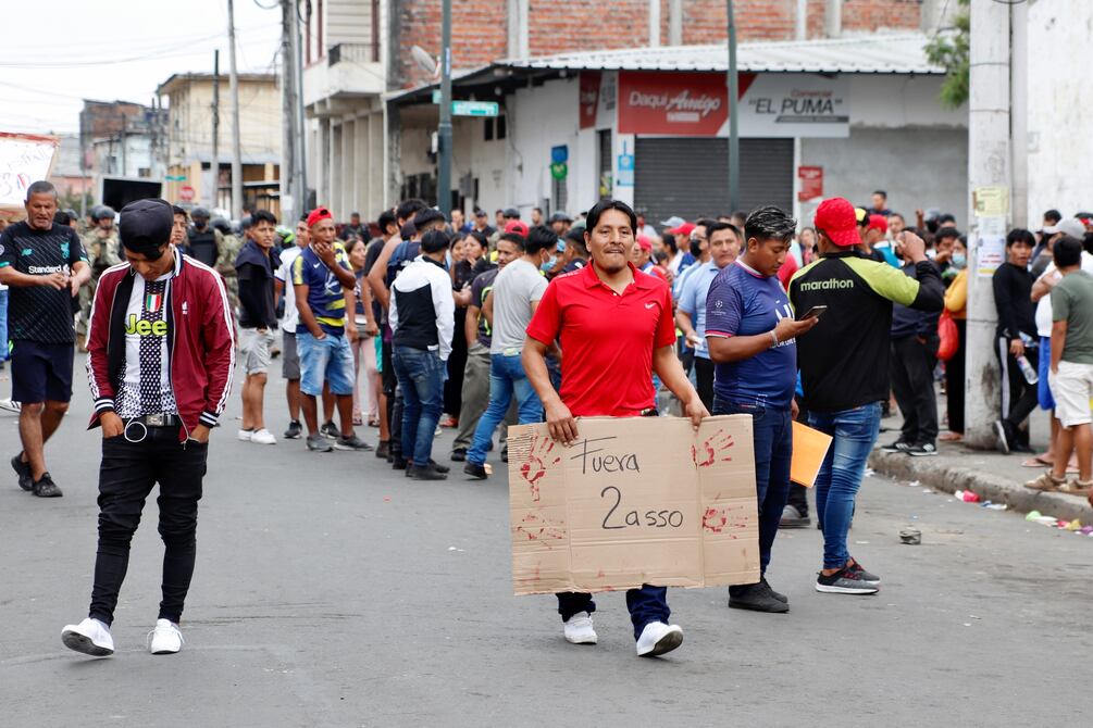 Agrupaciones sociales y de vendedores se reunieron desde las 05:00 de este martes en los exteriores del mercado municipal ubicado en las calles Abel Castillo y Gómez Rendón. Allí se usaron el balde de una camioneta como tarima, llevaron parlantes, altavoces, banderas, carteles para desarrollar la protesta.