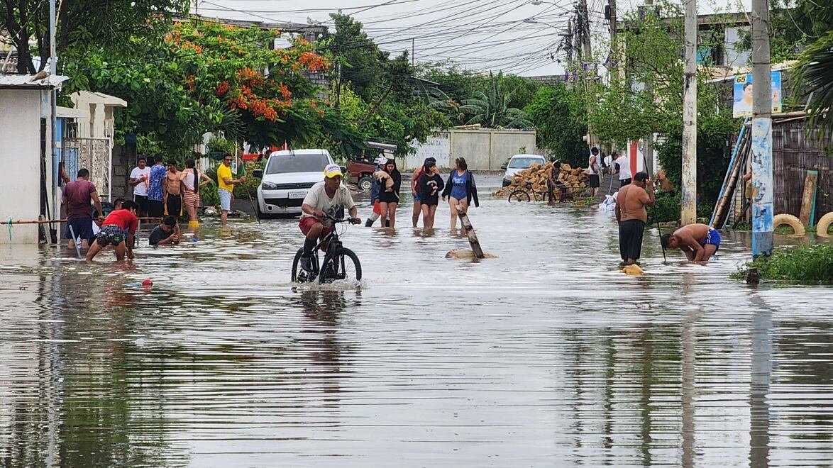 En varios sectores de la provincia de Santa Elena las calles se convirtieron en ríos por la lluvia registrada la madrugada de este sábado 25 de febrero, que se intensificó con el pasar de las horas.