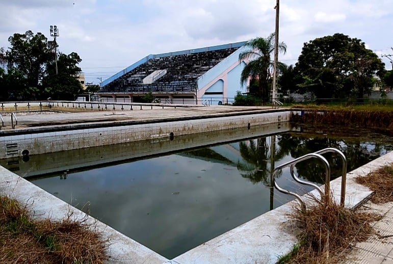Salas de ajedrez y yudo, así como el área de piscinas en donde pasaban jornadas deportistas y aficionados a estas disciplinas, ahora se ven destruidas e invadidas de recicladores y consumidores de drogra que ingresan al área deportiva abandonada en el Parque Forestal, en las calles Guaranda y Venezuela.