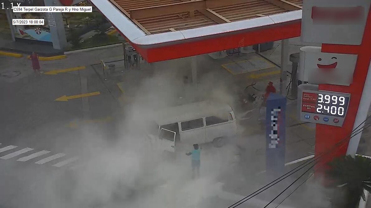 Un gran susto pasaron moradores de las avenidas Guillermo Pareja Rolando y Hermano Miguel, en la Garzota, norte de Guayaquil, debido a que una furgoneta se incendió al ingresar a una gasolinera ubicada en esa intersección.