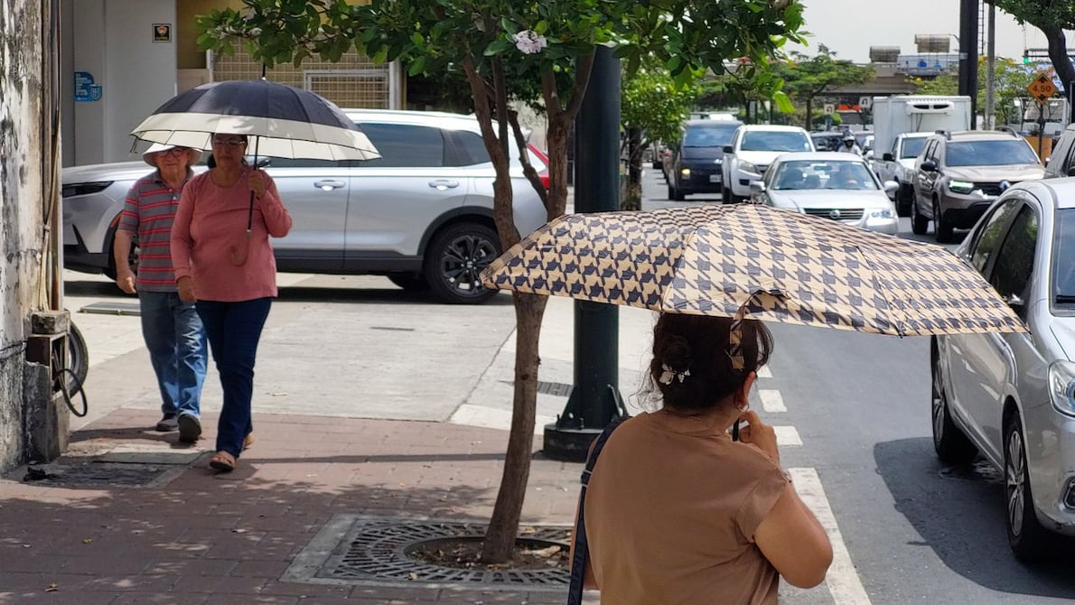 Los guayaquileños soportan días de intenso calor. Eso se puede observar en las calles donde las personas salen con sombrillas, gafas, gorras e incluso con abanicos debido a las altas temperaturas y para protegerse del sol.