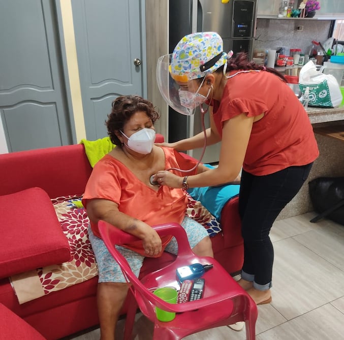 Un joven guayaquileño de 19 años estaba recostado en el mueble de la sala de su casa. Luego de un día con fuertes síntomas respiratorios, un equipo médico acudió para revisarlo y le aplicó un tratamiento de sueroterapia por deshidratación severa debido a síntomas relacionados con COVID-19.