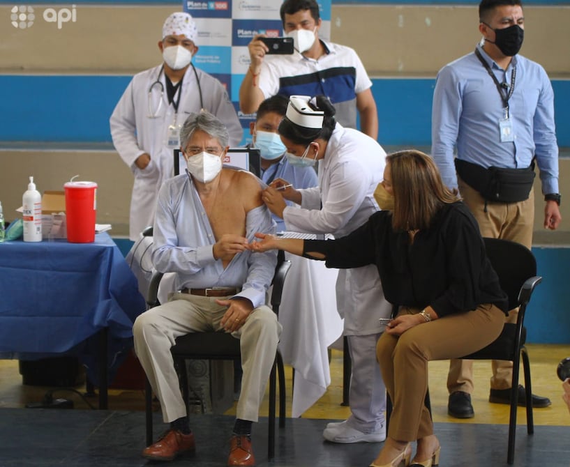El presidente de la República, Guillermo Lasso, recibió la tarde de este viernes la segunda dosis de la vacuna anti-COVID-19 en el coliseo de la Facultad de Educación Física de la Universidad de Guayaquil, en el norte del Puerto Principal.