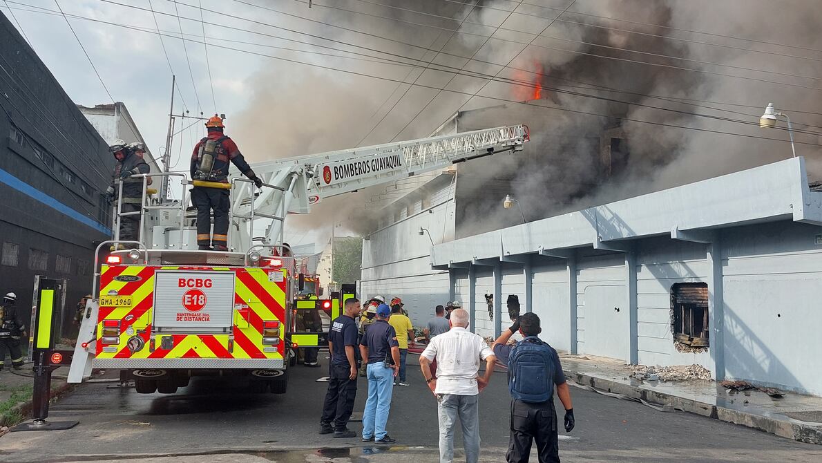Personal del Cuerpo de Bomberos se movilizó a las calles García Goyena y José Urbina Viteri (5 de Junio), sur de Guayaquil, para atender un incendio en la bodega de una fábrica de ese sector.