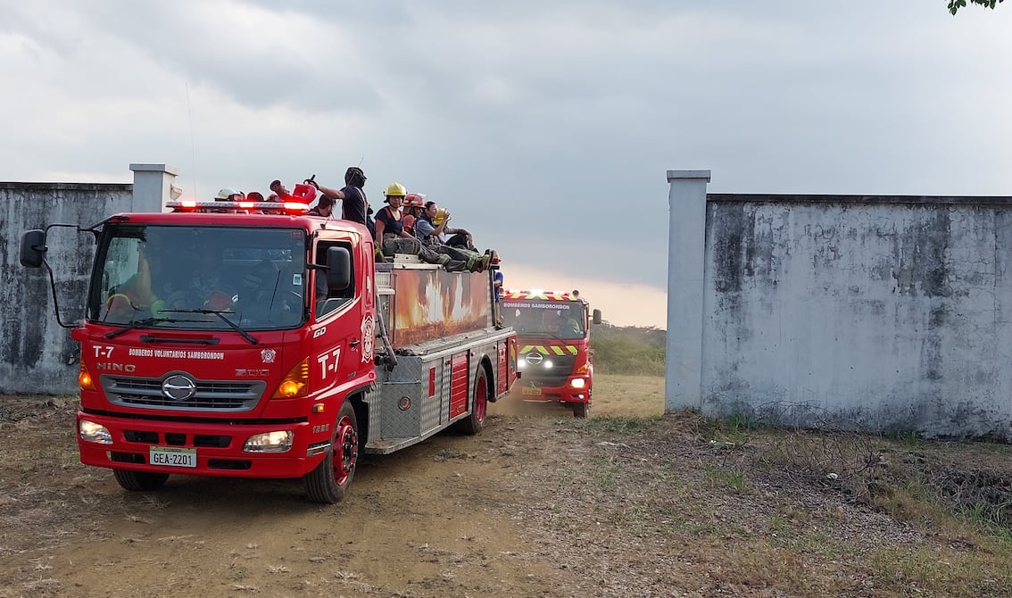 Unidades del cuerpo de Bomberos de Guayaquil, Daule y Samborondón atienden la emergencia que se registró la tarde de este lunes 31.