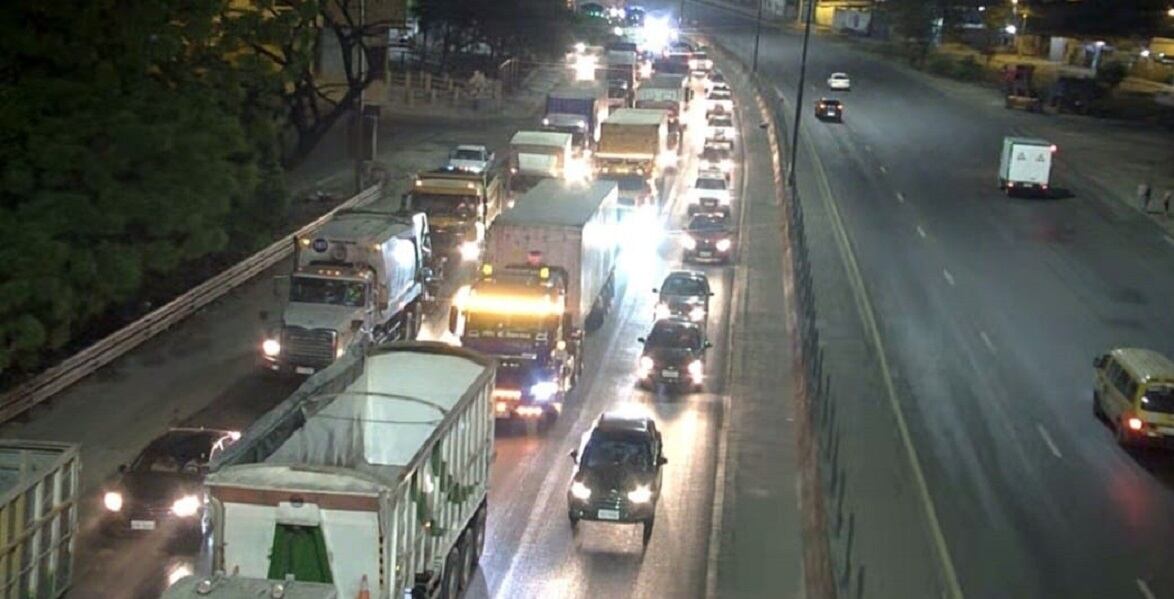 Un carril de la vía Perimetral, a la altura del sector Guamote, se mantiene aislado al tránsito en ambos sentidos de dicha arteria luego de un siniestro ocurrido la noche de este lunes, 27 de noviembre. El conductor de un bus de la cooperativa Villamil se impactó contra los muros divisorios de concreto.