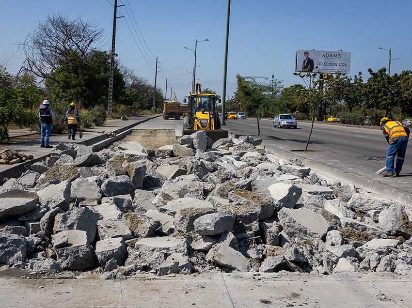 La Dirección de Obras Públicas del Municipio de Guayaquil interviene en áreas afectadas de la autopista Narcisa de Jesús, ubicada en el norte de la ciudad.