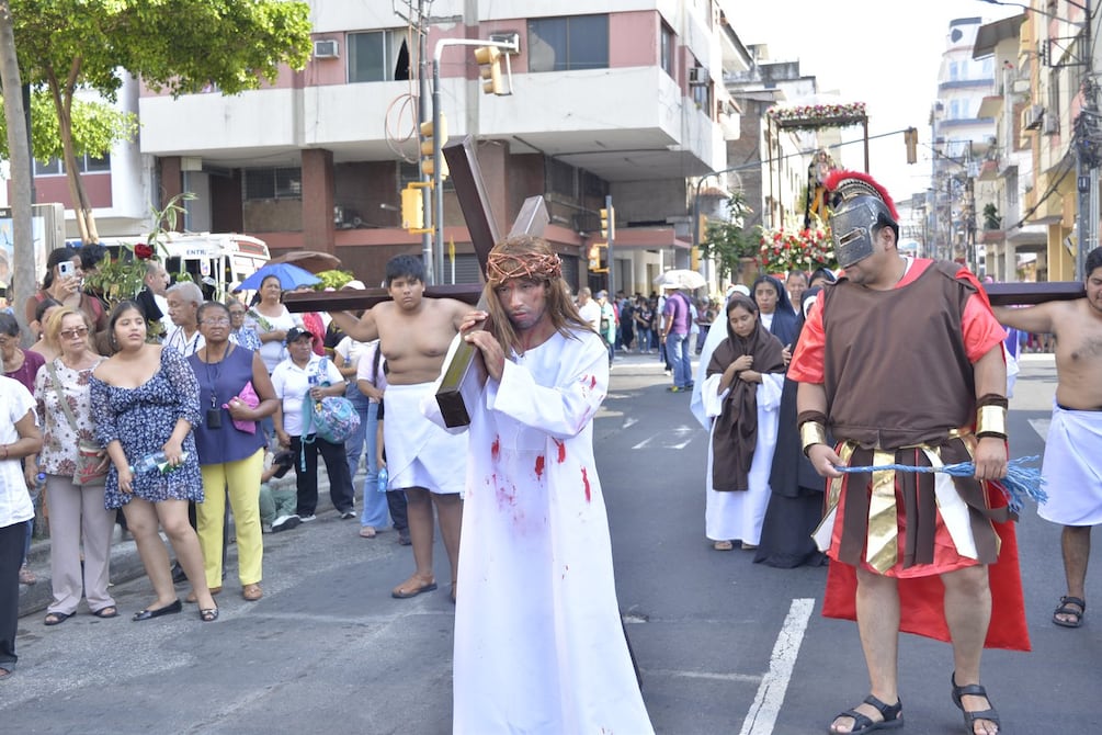 El viacrucis viviente recorre varias calles del centro de la ciudad, entre ellas la avenida 9 de Octubre, Baquerizo Moreno, Alejo Lascano, Lorenzo de Garaycoa, 10 de Agosto y Chimborazo, para finalmente retornar al punto de inicio.