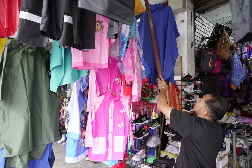 En la esquina de las calles Sucre y 6 de Marzo, Gabriel Peñafiel atiende en el local Bordados Nurias, donde la mercadería para la temporada de lluvias ya ocupa el espacio principal en el negocio.