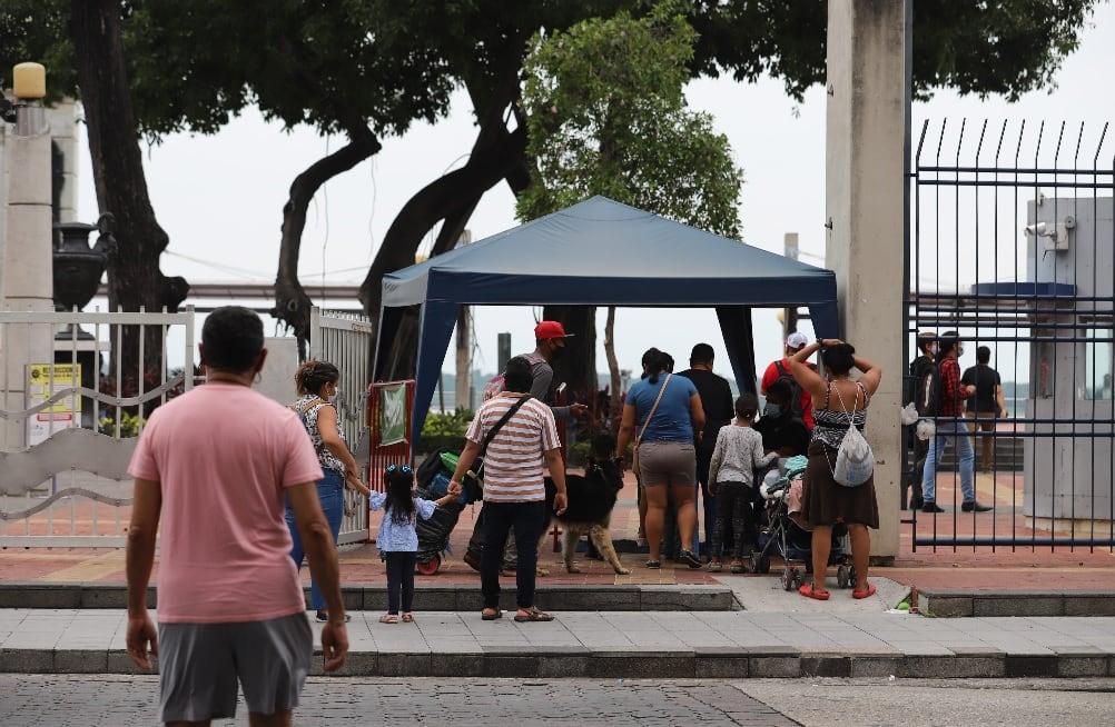 Bolsos, mochilas y carteras son revisados con detectores metálicos al ingresar al Malecón Simón Bolívar.