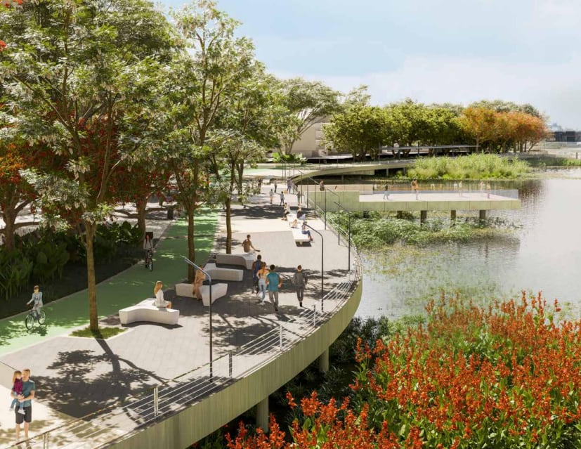 En una zona de 40,2 hectáreas se mantiene en estudios la proyección de Puerto Santa Ana 3 y 4, que incluirá un malecón peatonal de 1,5 kilómetros al pie del río Guayas con vegetación nativa e introducida en la ciudad.