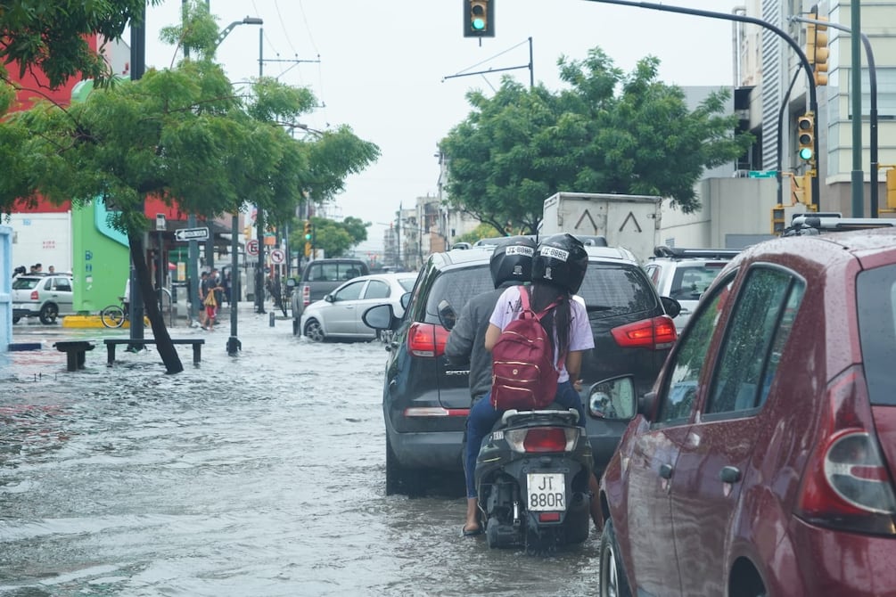 Vehículos avanzando despacio, conductores calculando por dónde cruzar y peatones levantándose el pantalón para no empaparse.