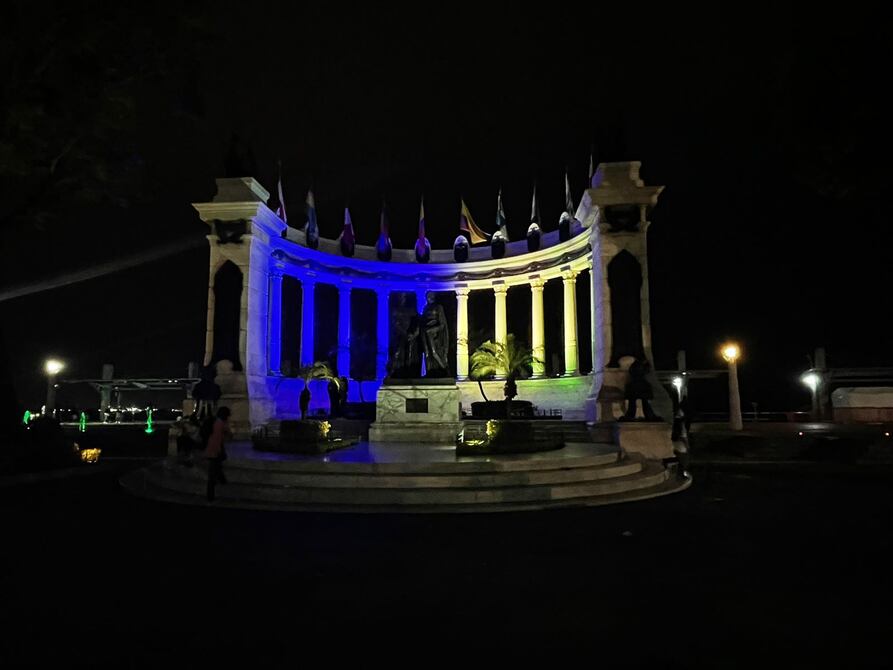 Sitios emblemáticos y monumentos de la ciudad portuaria de Guayaquil se iluminaron el viernes con los colores de la bandera de Ucrania, en un mensaje de solidaridad con el país ante la invasión rusa.
