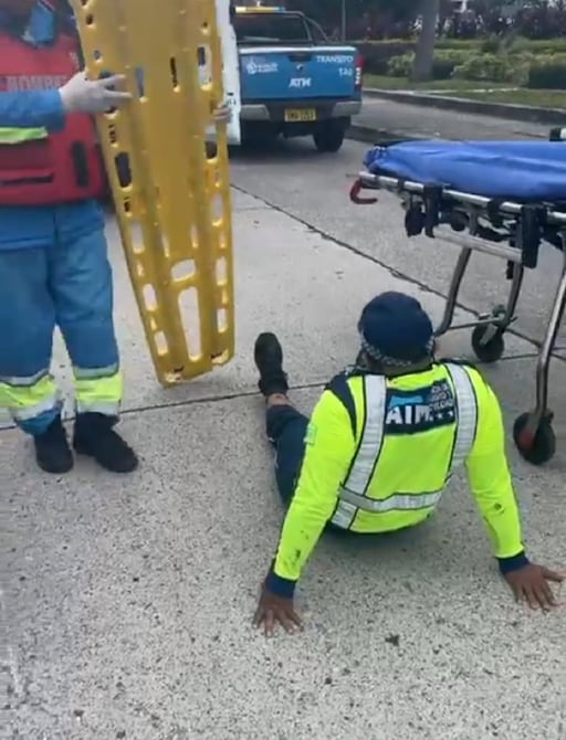 En su intento por evadir un control de los uniformados de la Agencia de Tránsito y Movilidad (ATM) en la avenida Pedro Menéndez Gilbert, a la salida de los túneles, el conductor de una motocicleta pasa por el sitio a alta velocidad y atropella a uno de los agentes.