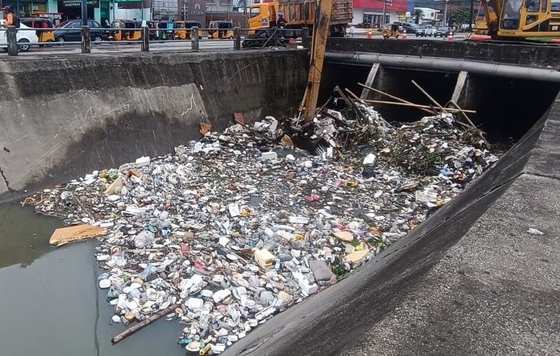 Cañas, maderas de construcción y basura de todo tipo se han encontrado en estos días en los canales de agua de Guayaquil.