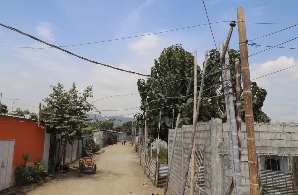 Leonel Castro legalizó hace cuatro años su terreno en la cooperativa Canelar Olguita, sector de Monte Sinaí, pero ve con desazón que la obra pública aún no llega. En su manzana, la 5663, cañas vetustas sostienen los cables que llevan energía eléctrica a las viviendas desde un transformador ubicado por la parroquia eclesiástica La Transfiguración, en la parte alta de un cerro.
