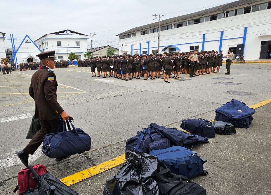 Juan López y su esposa Julieta llegaron desde Santo Domingo de los Tsáchilas para ver como su primer hijo, Andrés, de 19 años, era asignado a un área de Guayaquil como parte del nuevo grupo de uniformados que se unen a las labores de seguridad.