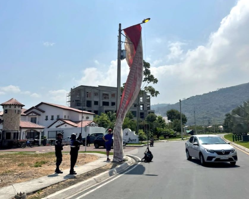 Dos personas que iban a bordo de un parapente de color naranja sufrieron un percance este sábado, 9 de agosto, en la vía a la costa, en el oeste de Guayaquil.