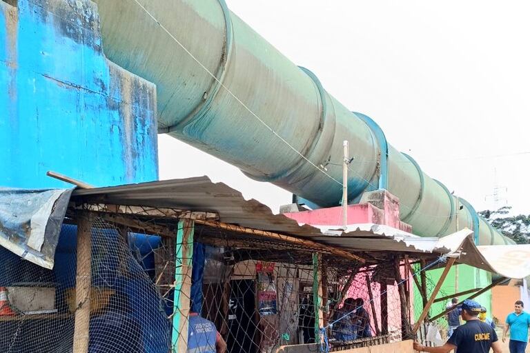 En imágenes compartidas se observó que varias estructuras se habían instalado por debajo de una tubería de grandes proporciones.