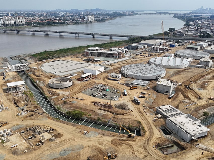 La planta Los Merinos contempla una inversión de $ 182,8 millones, financiada por el Banco Mundial, y tendrá una capacidad de tratamiento de 7,26 metros cúbicos por segundo, de acuerdo con los datos oficiales. La infraestructura se construye sobre un terreno de 50 hectáreas y reemplazará a las lagunas de oxidación Samanes-Guayacanes y Sauces-Alborada.
