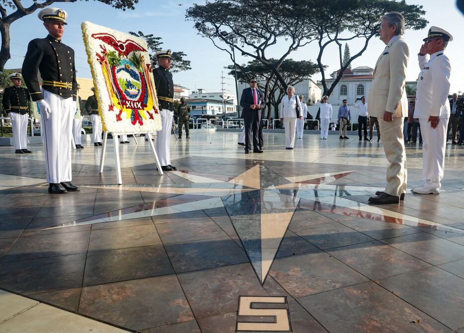 Autoridades de Gobierno llegaron al Complejo Cívico Naval Jambelí, ubicado en la calle Eloy Alfaro, para la colocación de una ofrenda floral. El acto se cumple en el marco de la conmemoración de los 488 años del proceso de fundación de Guayaquil y la gesta del combate de Jambelí.