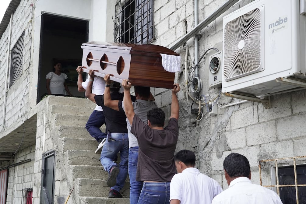 Familiares y amigos cargaron el féretro y lo subieron hasta el segundo piso de la vivienda, una casa estrecha situada en una zona vulnerable del sector.