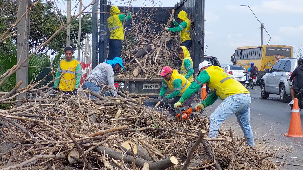 Al menos diez trabajadores del Departamento de Aseo de Calles y Recolección del Municipio de Samborondón trabajaban esta mañana en el puente de la Unidad Nacional, en sentido La Puntilla-Guayaquil, para retirar en total tres árboles.