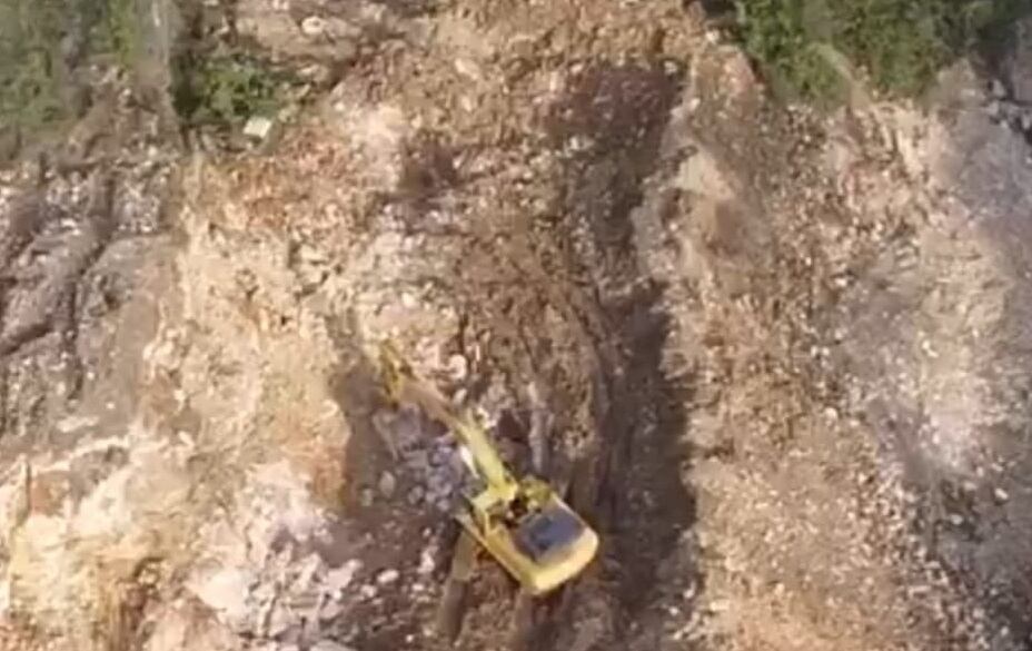 Una retroexcavadora retira material a unos metros de los linderos de la urbanización Bosques de la Costa. La maquinaria pesada mueve las uñas de un lado a otro en medio de una amplia excavación.