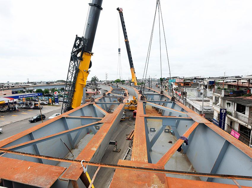 La madrugada y mañana del domingo 3 de marzo se realizó el izado de dos vigas curvas en la intersección de las avenidas 25 de Julio y Roberto Serrano, sitio en el que se construye una solución vial, indica el Municipio de Guayaquil.